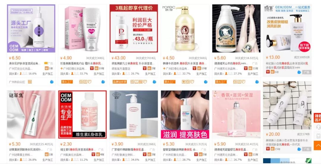 如果你是做身体乳的,你会怎样去做这张网销宝推广主图?(结合综合排序和按销量排序页的一个同行情况做,有兴趣的读者可以想下,到文章下互动,不管对错,都可以获得免费诊断店铺!)